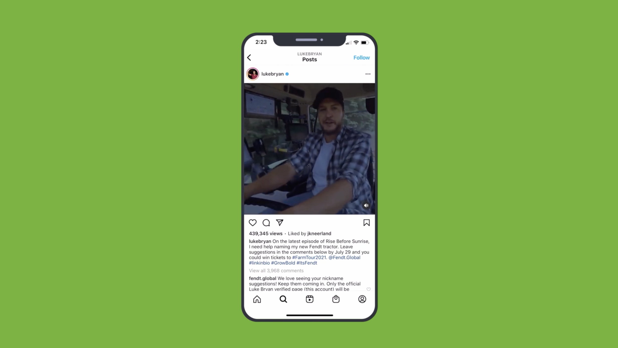 Farmers put in a full day’s work long before the sun rises. So we helped Fendt team up with Luke Bryan to create this 20-episode content series where Luke woke up with farmers to keep them company as he reconnected with his farming roots. New episodes were released when farmers started their day — before sunrise. So, if you wanted to be the first to see exclusive Luke Bryan content, you had to set an alarm and wake up with farmers.Nicknames Social